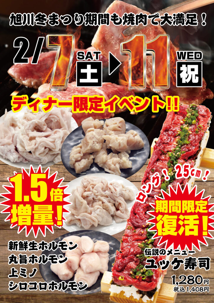 【焼肉ホルモンおはこ】冬まつり期間限定イベント実施!伝説の「ユッケ寿司」も復活!